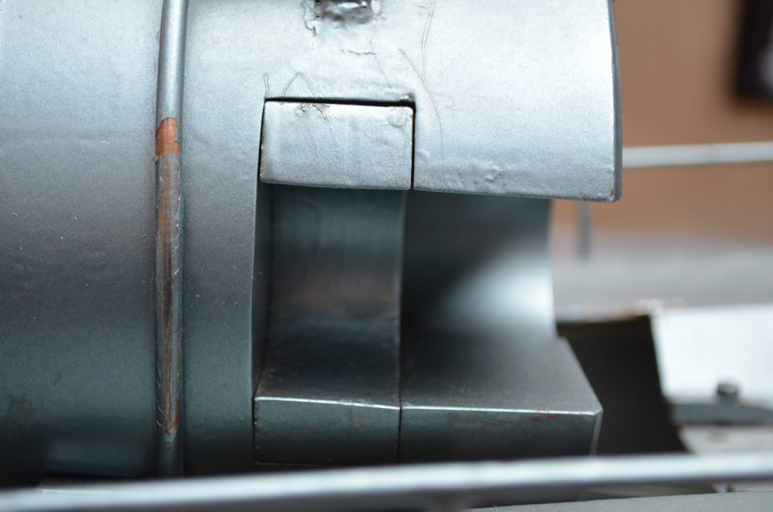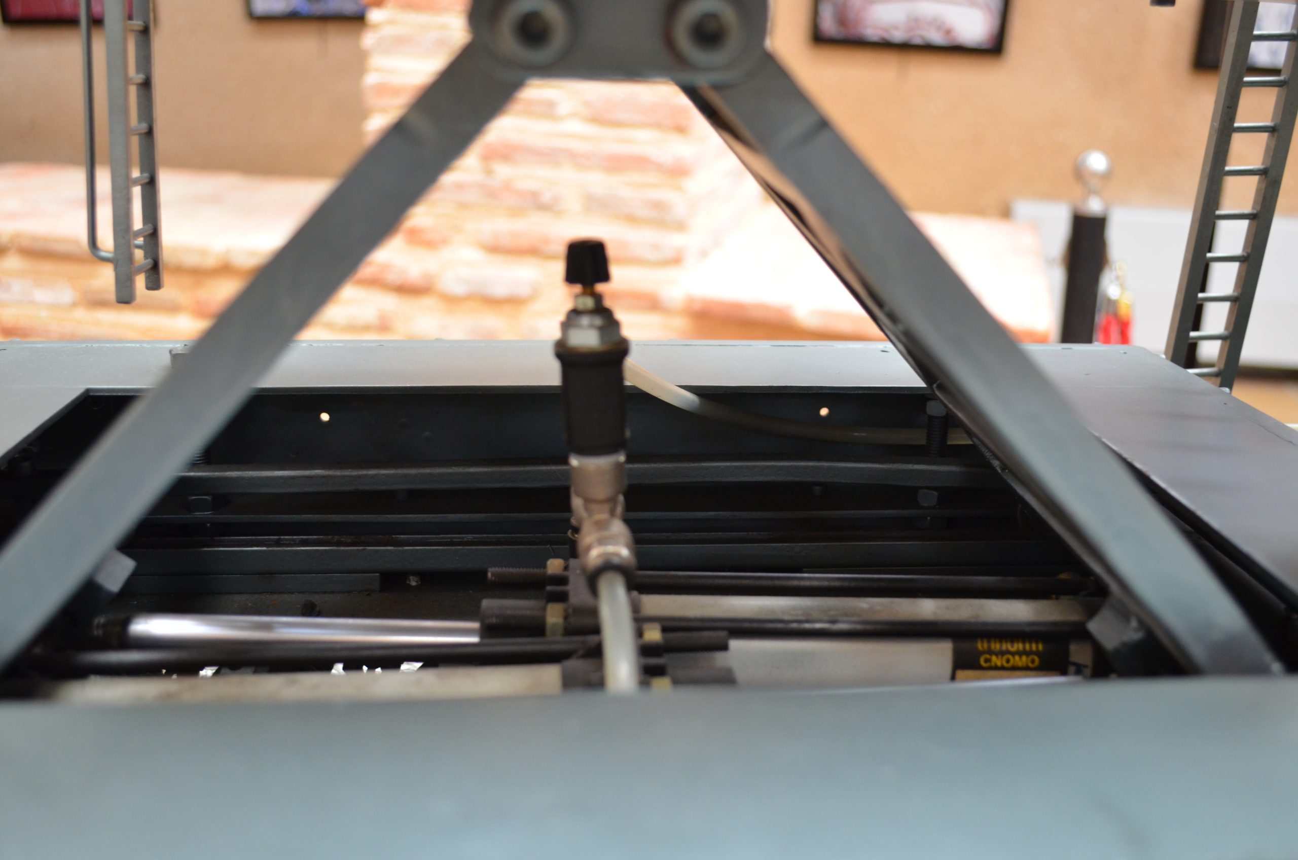 Las tijeras de elevación en principio se construyeron con una doble articulación y un patín de deslizamiento. Este sistema fue necesario transformarlo, pues los cilindros, debido al excesivo peso y rozamiento no conseguían elevar la estructura. Se eliminó una articulación y los patines de deslizamiento se cambiaron por unas ruedas con rodamientos y, de este modo, el funcionamiento es perfecto.